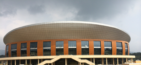 岳西体育馆是以‘高标准、高起点、高质量’来护航省十三届运动会的。它是岳西县目前体量最大、投资最大的单体建筑,可接待篮球、手球、排球、羽毛球、乒乓球等赛事。工程设计先进,质量可靠,被评为“省级文明示范工地”,并争创“黄山杯”。