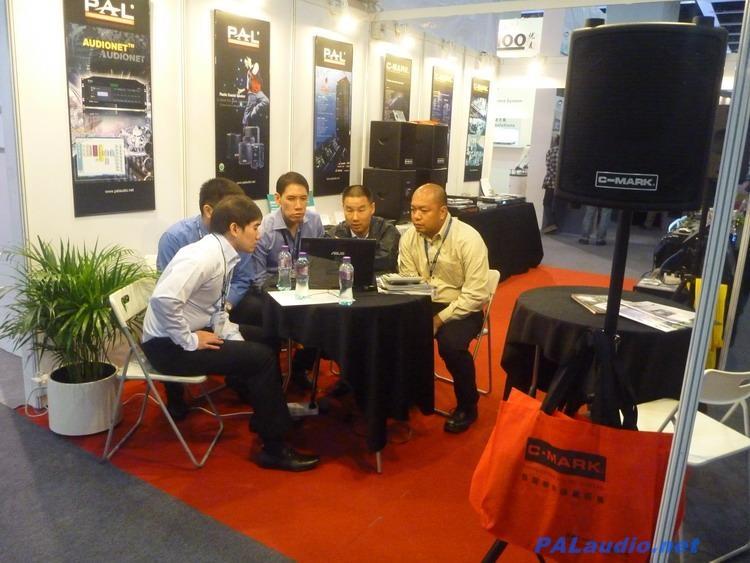 图1:宝业恒公司展台 图2:为客户介绍最新的数字网络音频系统 图3:为客户介绍宝业恒专业音响在工程项目中的应用 图4:宝业恒最新数字网络音频系统系列产品