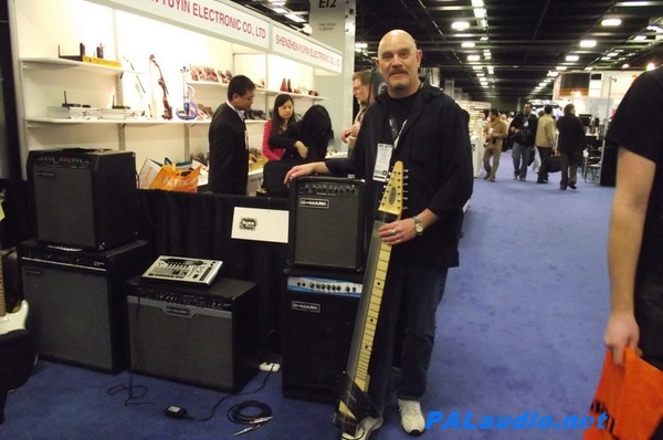 图3: 美国著名的吉他手Mr. Steve Adelso准备用我们的吉他音箱演奏