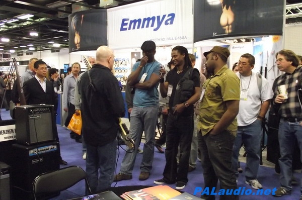 图4: 美国著名的吉他手Mr. Steve Adelso正在用我们的吉他音箱演奏,引起许多观众围观